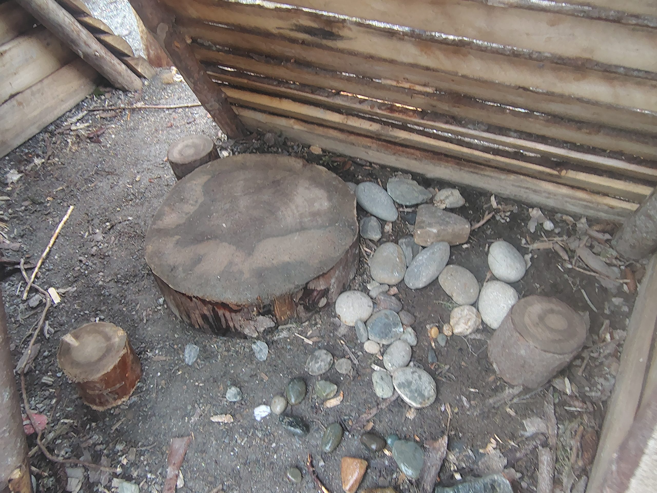 Lava play, moving around the area without touching the ground, became popular. Everything that could be stepped on was used: boulders, embedded logs, the stone edging obstacle course, tall stumps, and natural rocks. This was possible because all elements were within jumping distance for average 3–5-year-olds.